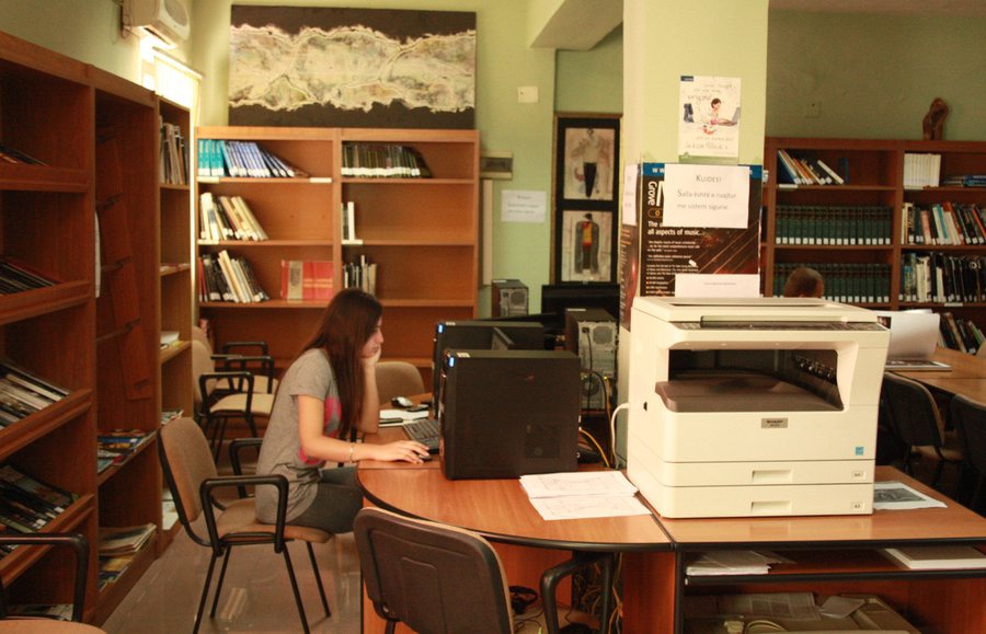Salla me fond të hapur e Bibliotekës Shkencore të Universitetit të Arteve është komode dhe është në shërbim të plotë të studenteve, pedagogëve, e studiuesve të artit çdo ditë të javës, nga ora 8:00 - 19:00. Në kompjuterat e saj jane instaluar programe specifike per disiplinat e studimit, ku studentët studiojne dhe pregatisin detyrat e tyre. Stacionet kompjuterike disponojne akses ne internet. Gjithashtu salla ofron shërbimin e printimit me ngjyra dhe shërbimin e fotokopjes.